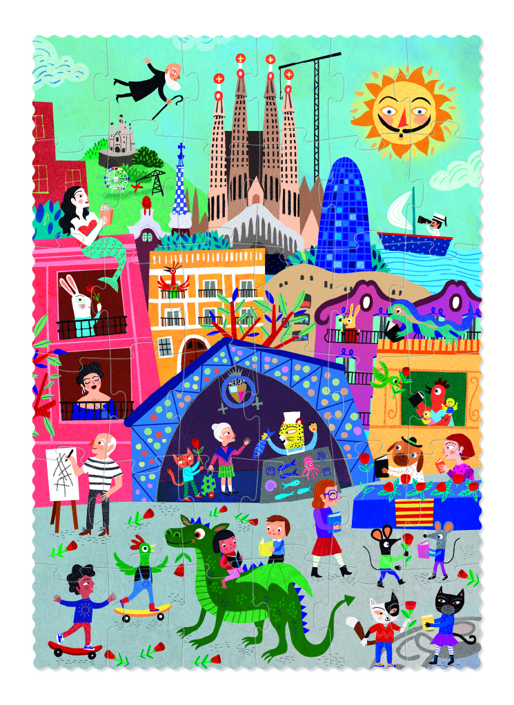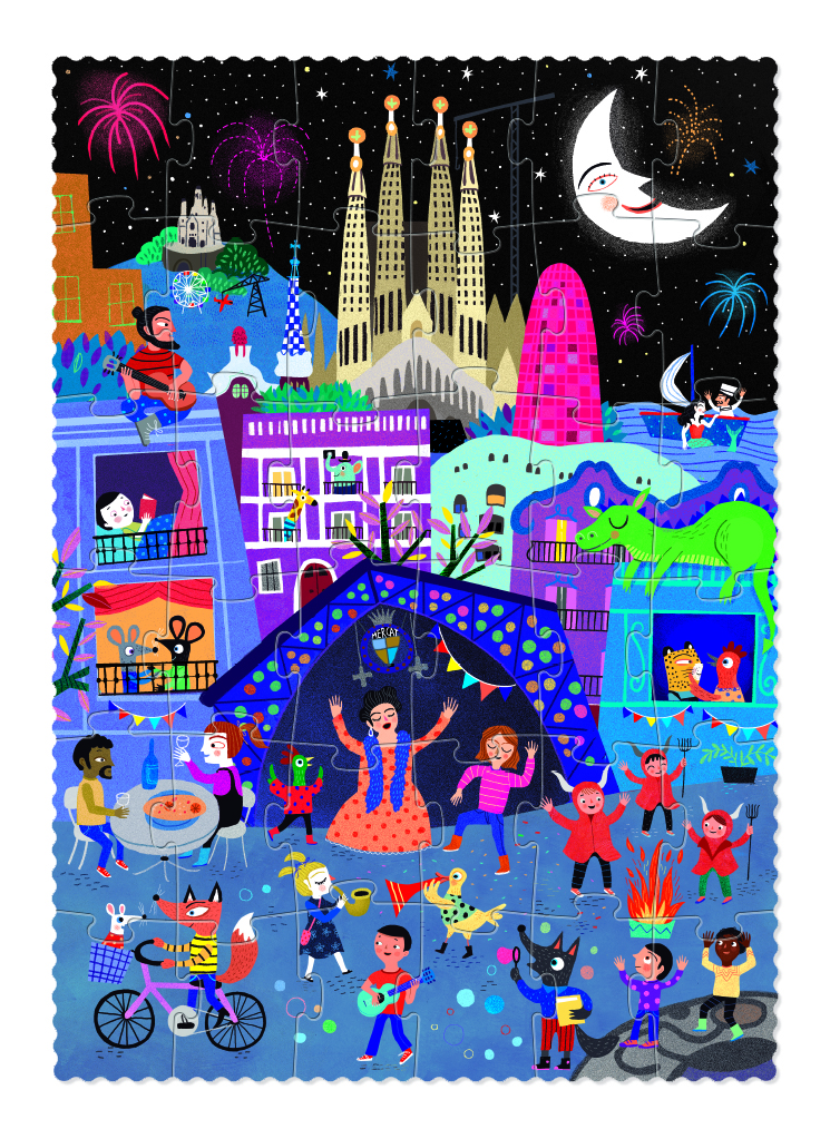 Das zweiseitige Puzzle zeigt die aufregende Stadt Barcelona einmal bei Tag und einmal bei Nacht. Hier gibt es einiges zu entdecken! Für kleine Puzzler ab 3 Jahren.